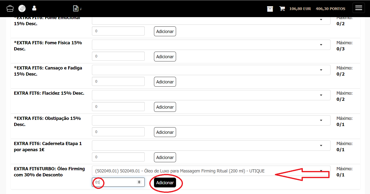 Adicione o ÓLEO DE LUXO PARA MASSAGEM FIRMING RITUAL UTIQUE com desconto na opção EXTRA do Carrinho de Compras.