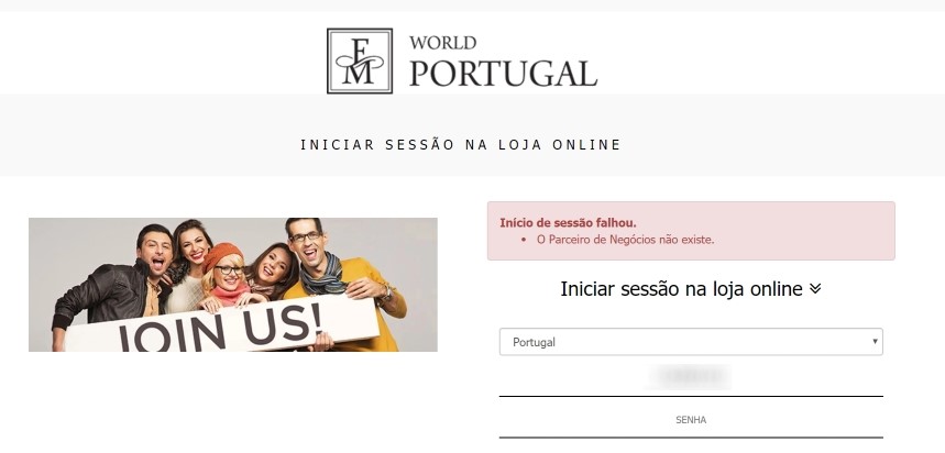 Já na Loja Online, ao colocar os seus dados de acesso,